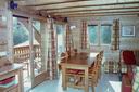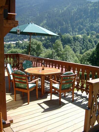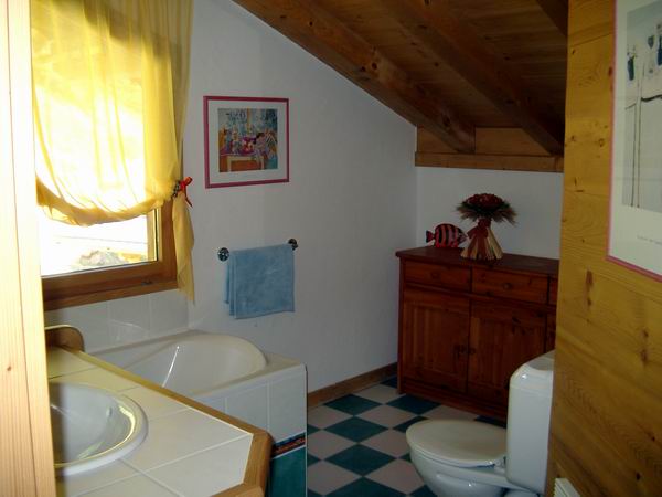 The chalet has a large lounge with open plan kitchen, traditional fireplace, Sony stereo system, 26 inch LCD TV, 2 satellites, one for UK channels and one for French and a DVD/Video player. You are welcome to use the CDs, DVDs and Videos kept at the chalet or you can take your own. The kitchen is equipped with a large fridge freezer, hob, fan oven, full size dish washer, extractor fan, microwave, coffee percolator and breakfast bar. There are also 24 place settings and adequate cooking utensils. The dining area has a table with seating for eight, the lounge faces the Mont Blanc Massif and has superb views of Aiguille de Bionnassey (4052m) in the NE to Mont Tondu in the SE. This floor also has a toilet/shower room and bedroom number 4 which contains a double sofa bed. The lounge opens on to a large balcony.
