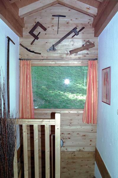 Leading off the entrance hall is a laundry/drying room, ski room and a door leading to a double garage. The heated laundry is equipped with a washer and there is also plenty of hanging space for drying wet clothes and boots. There is a tumble dryer located in the garage. The Ski room will usually be locked to visitors as it contains some of the owners personal possessions, the garage has ample space for storing skis and boots etc. The chalet is heated by under-floor heating and electric wall radiators. |